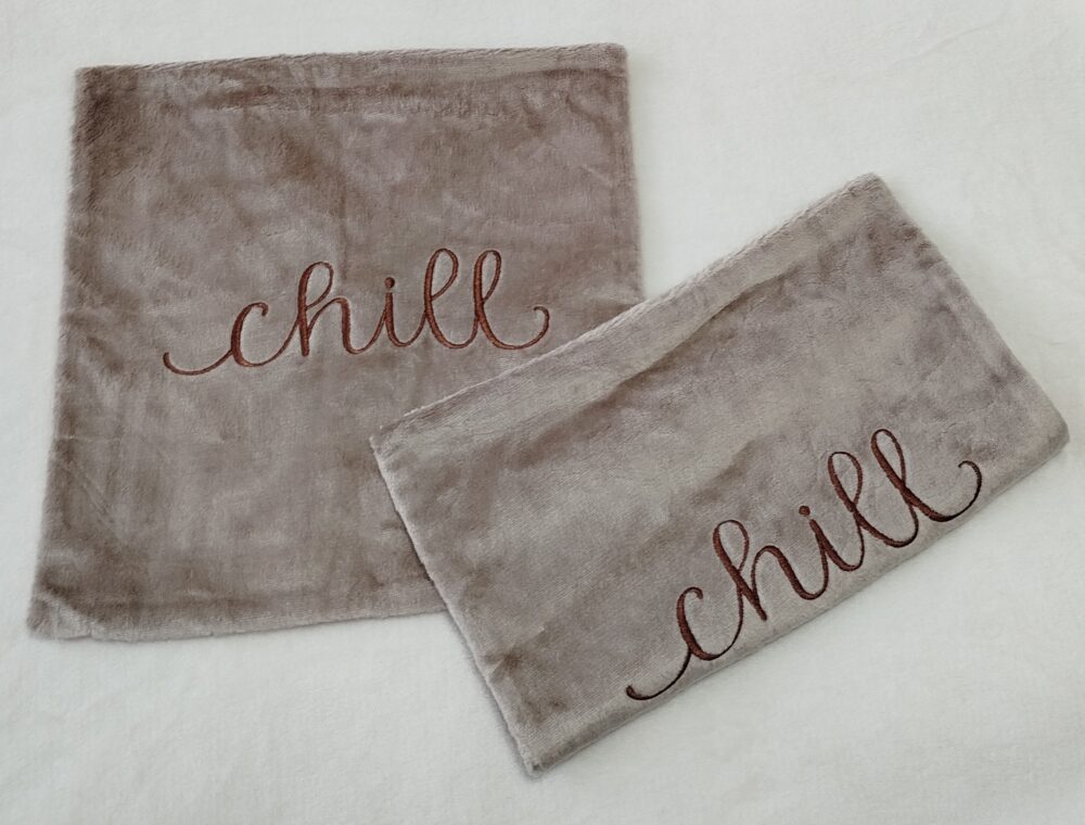 Užvalkalai pagaminti iš 100 % poliesterio, kuris yra minkštas, lengvai prižiūrimas ir atsparus kasdieniam naudojimui. Dekoruoti užrašais „chill“ ir „Monaco blue weekend“.