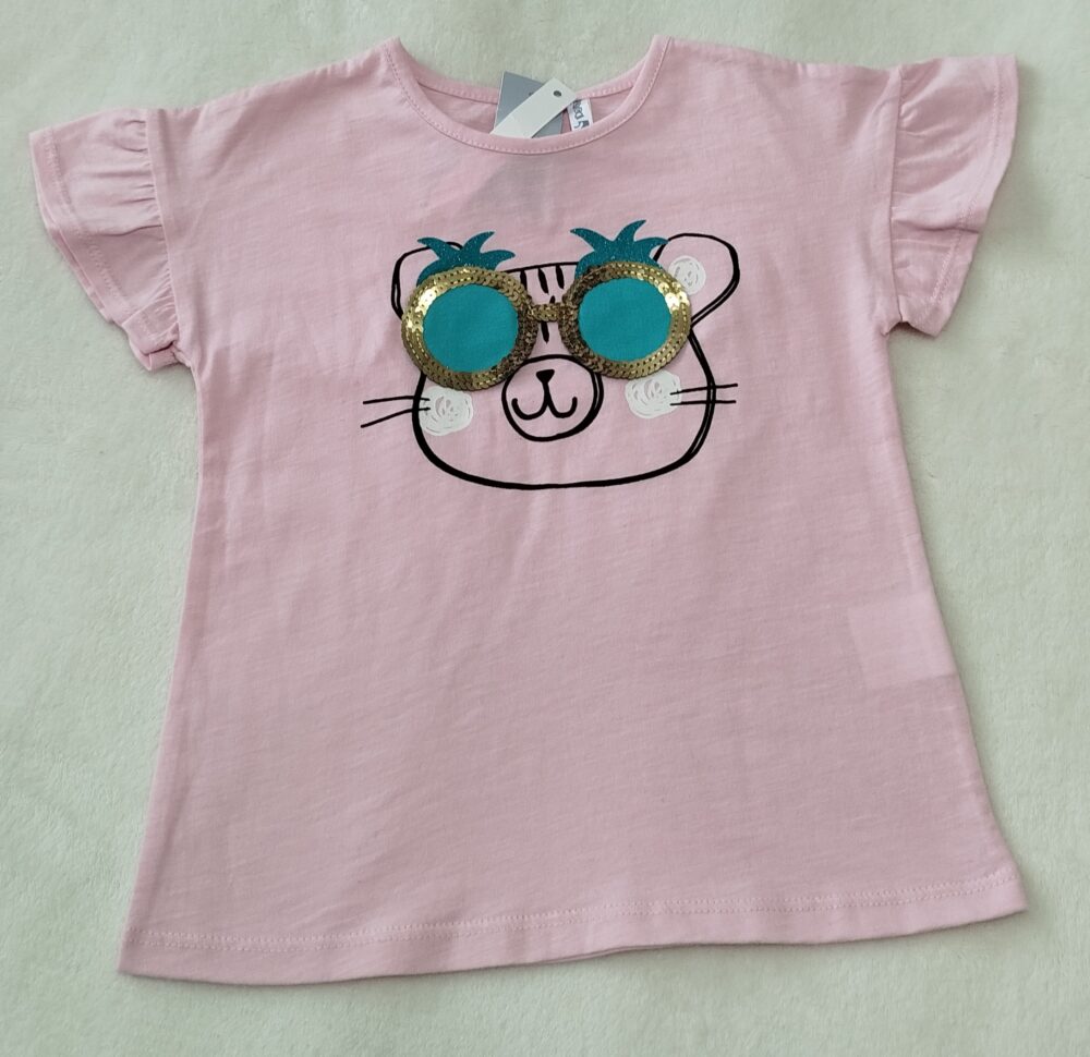 Šie rožiniai marškinėliai mergaitėms su mielu gyvūnėlio piešiniu ir blizgiais dekoratyviniais akiniais sukurti tam, kad kasdienė apranga būtų ne tik patogi, bet ir linksma.