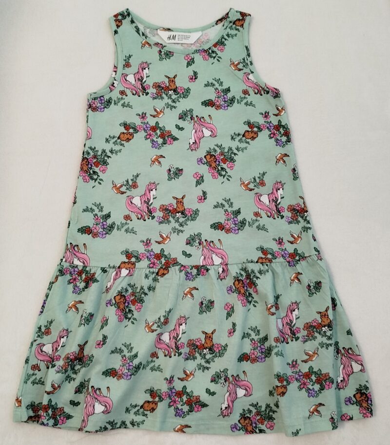 Lengva ir patogi vaikiška suknelė iš 100 % medvilnės. Švelnios spalvos ir žaismingas raštas puikiai tinka kasdieniam dėvėjimui darželyje ar laisvalaikiui. Dydis – 110/116 cm ir 122/128 cm.