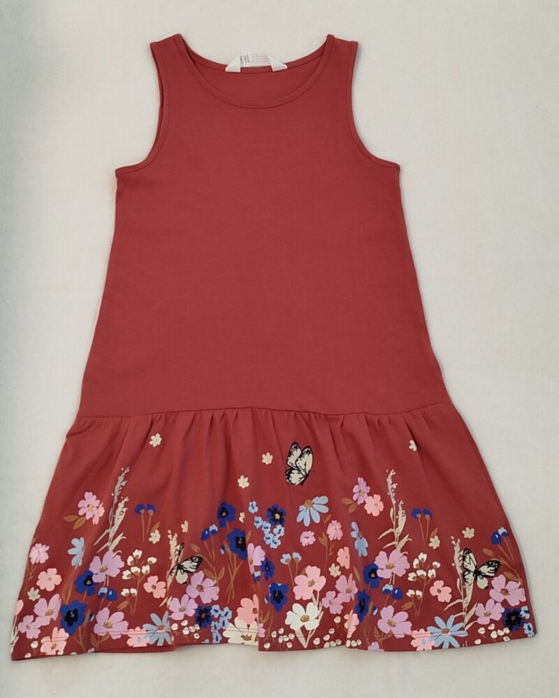 Lengva ir patogi vaikiška suknelė iš 100 % medvilnės. Švelnios spalvos ir žaismingas raštas puikiai tinka kasdieniam dėvėjimui darželyje ar laisvalaikiui. Dydis – 122/128 cm.