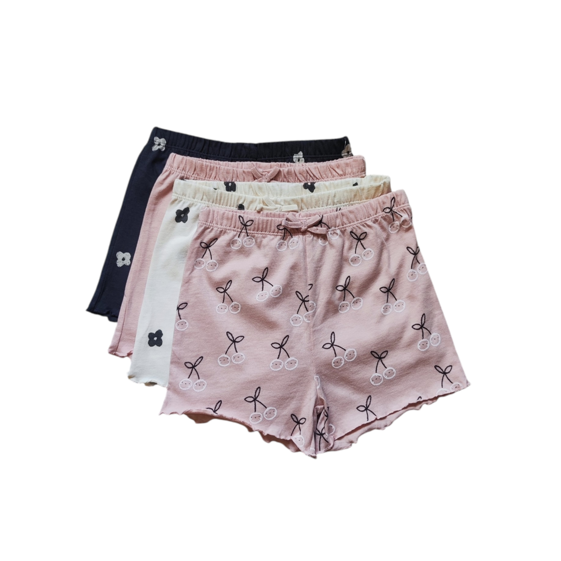 Mielas ir patogus 4vnt šortų komplektukas mergaitei – puikus pasirinkimas kasdienai ar vasarai. Minkšta medvilnė užtikrina komfortą, o žaismingi raštai suteikia stilingumo.